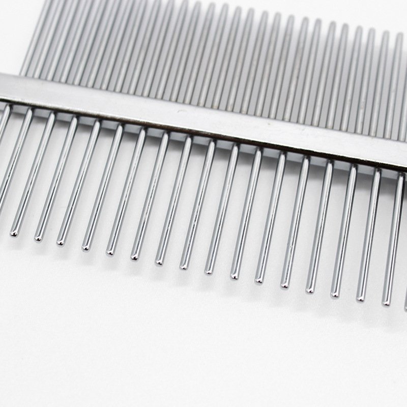 [Commodity introduction]: Double-sided sparse and dense tooth design, round needles, can go deep into the bottom of the hair, easy to comb, without hurting the hair and skin. The non-slip handle that fits the ergonomic design is comfortable to grip, allowing you to more effortlessly comb the coat of your pet. Plastic handle hollow footprint design, beautiful and fashionable! Comb the tangled hair and remove the fallen hair to make the hair more beautiful.